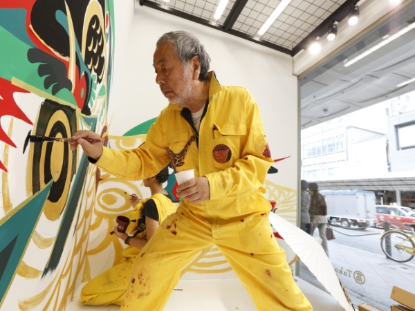 1942 年大阪府泉大津市生まれ。京都市立美術大学(現:京都市立芸術大学)卒業。日本のロック黎明期にイベントプロデューサーとして活躍した後、2001 年還暦を前に壁画制作を開始。京都・青蓮院門跡の襖絵をはじめ、京都市動物園、関西国際空港、商業施設、レストランなど国内外 200 カ所以上で壁画を手がける。躍動感ある大胆な構図と鮮やかな色彩で、街の空間そのものを作品に変える独自のスタイルで知られる。