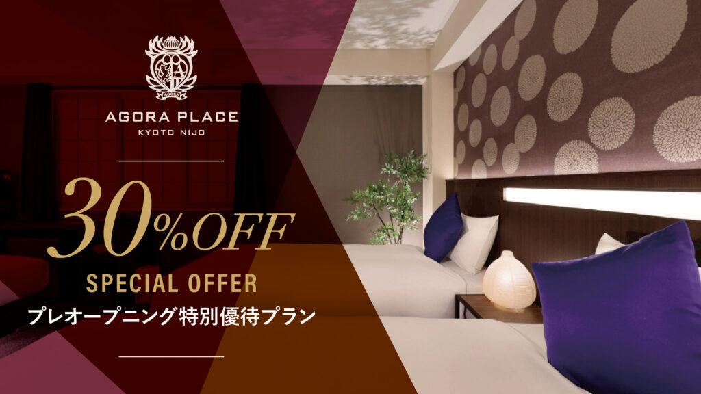 2026年2月16日(月)の「アゴーラプレイス 京都二条」誕生を記念した、今だけの特別な先行予約プランをご用意しました。 公式サイトからのご予約で基本料金より20%OFF。 さらに、会員にご登録いただくと追加で10%OFFが適用され、最大30%OFFにてご宿泊いただけます。