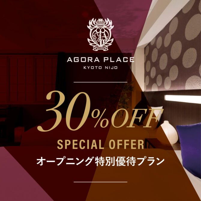 2026年3月30日の「アゴーラプレイス 京都二条」誕生を記念した、今だけの特別なプランです。 公式サイトからのご予約で、基本料金(ベストフレキシブルレート)より20%OFF。 さらに、会員にご登録いただくと、追加で10%OFFが適用され、最大30%OFFにてご宿泊いただけます。