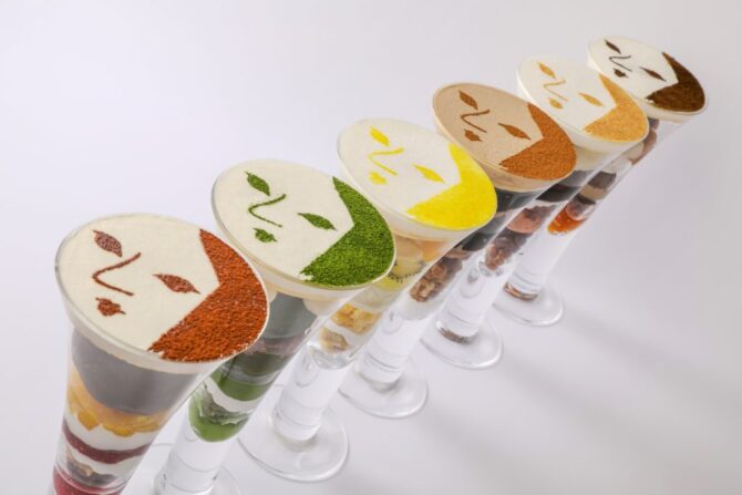宇治抹茶を使用した名物の「顔パフェ」や「顔カプチーノ」など京都らしい味わいが楽しめます。